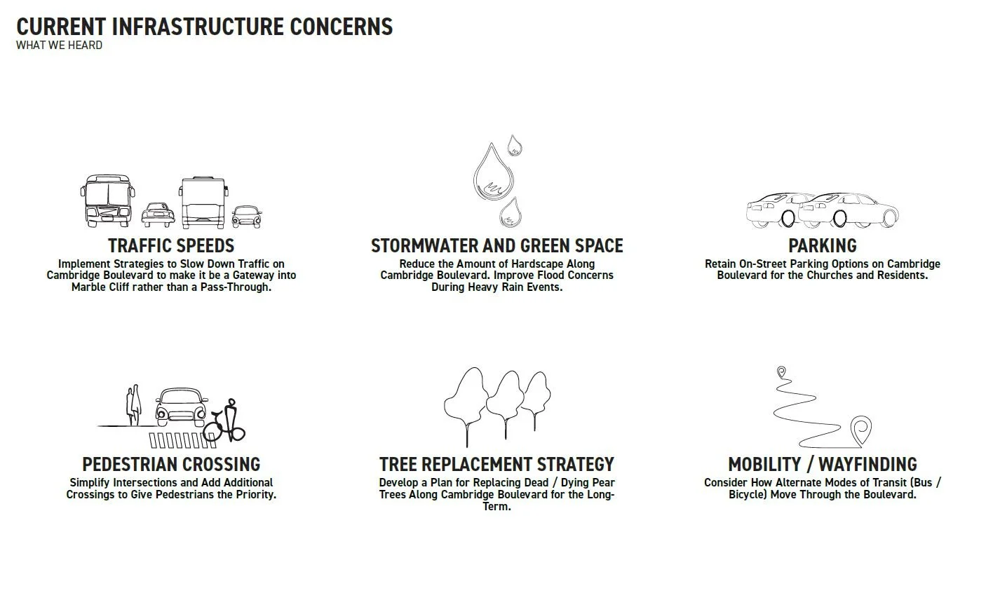 The Community of Marble Cliff is tight-knit and involved. When talks of reimagining Cambridge Boulevard began, community leaders asked REALM to do design development, as well as hold a public engagement session. REALM was asked to find out the needs and wants of the community in terms of