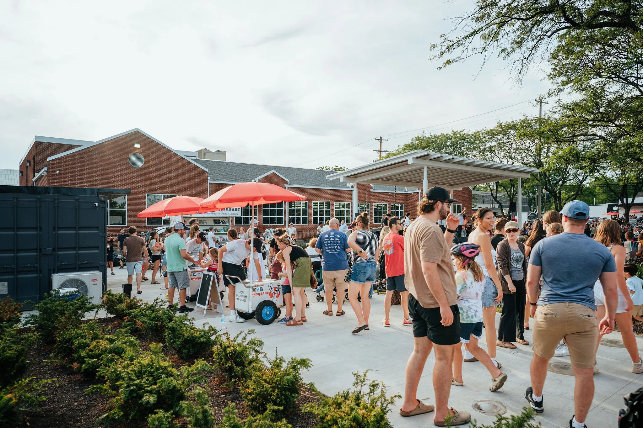 With less parking needed due to increased use of the drive-thru and walk-up window, a portion of the existing lot will be converted to add green space for recreation, seating and food truck parking for events and programs. A new canopy structure was envisioned in collaboration with WSA studio to provide covered seating and a more permanent stage for yearly activities reducing the need for costly temporary stage setup and equipment rentals.