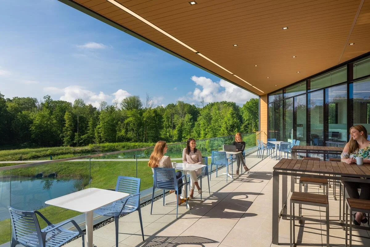 Big ideas: In conjunction with the plant expansion, as one of the nation’s foremost retailers and food service operations manufacturer, a ground-up headquarters was planned to be built on the site. REALM was brought in early on to help set a vision for a campus identity that would connect the disparate buildings and help to bring employees and office users together through a series of exterior spaces for gathering while providing for opportunities to engage with nature.